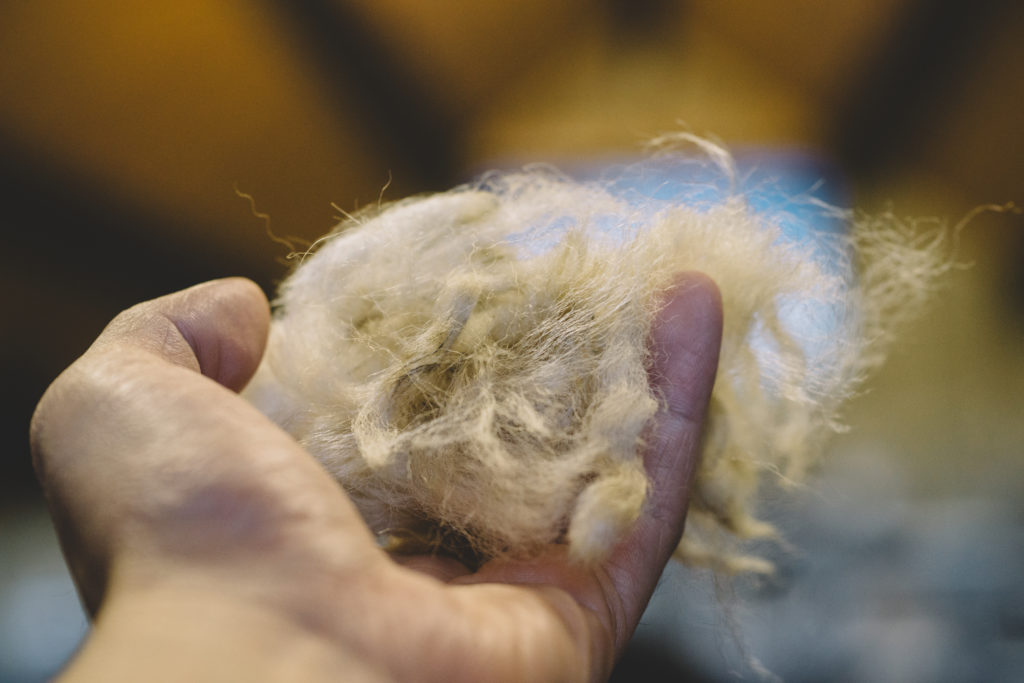 ・カーディング:洗浄された繊維はその後、カーディング機という回転するブラシによって一方向に整列されます。