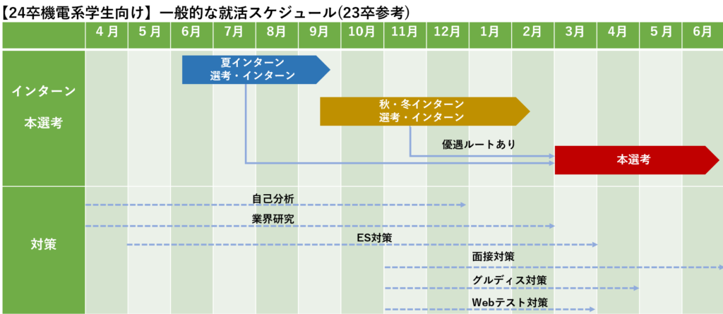 今回は機電系学生向けに、就活における選考のスケジュールと対策方法をご紹介しました。